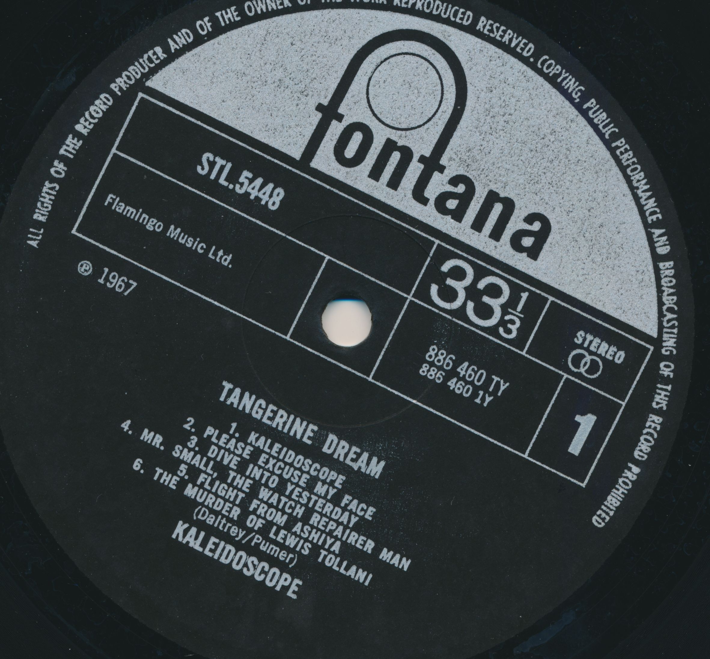 Maar nee. Via Wikipedia leerde ik dat Kaleidoscope de naam was van de band, en hun LP heette Tangerine Dream. De plaat kocht ik als uitverkoopje in de bak met afdankertjes van Vroom & Dreesmann (weet u nog) in De Boogaard in Rijswijk. Voor één gulden kon ik deze LP meenemen.